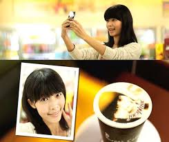 Para atraer a más clientes una de las cadenas taiwanés Let´s café decidió imprimir rostros de sus clientes en sus lattes. Usando un especial de impresora de café, los clientes pueden subir sus fotos en la máquina, y la impresora inmediatamente reproducirá su imagen con el cacao en polvo