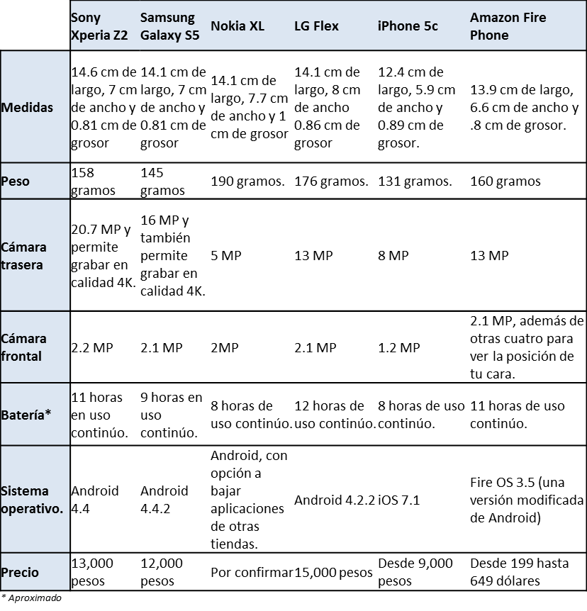 Así se compara el nuevo Fire Phone de Amazon, frente a sus competidores de Apple, Samsung, Nokia, LG y Sony:
