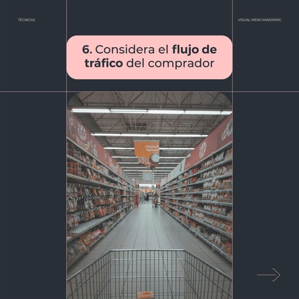 Estudia el patrón de movimiento de los clientes en la tienda. Luego, coloca los productos más populares o de mayor interés en áreas de alta visibilidad y accesibilidad. Dirige el flujo de tráfico hacia áreas estratégicas mediante elementos visuales llamativos y señalización clara. Asegúrate de que haya suficiente espacio para que los clientes se desplacen cómodamente y exploren los productos sin obstáculos.