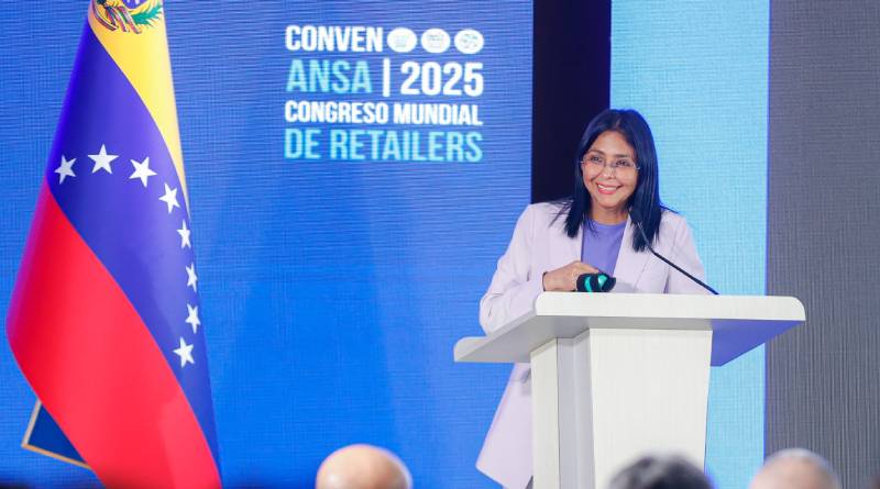 El Congreso Mundial del Retailers, capítulo Venezuela, tuvo como invitada a la vicepresidenta ejecutiva, Delcy Rodríguez, quien dio la bienvenida al país de todos los expertos internacionales, se refirió al peso del retail en la economía venezolana, el cual situó en un 4,5%, e hizo un llamado a todos los sectores económicos del país a cobrar la tasa justa del dólar establecida por el Banco Central de Venezuela (BCV).