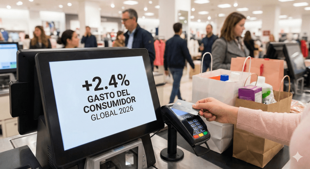 Visa proyecta que el gasto del consumidor a escala global crecerá un 2,4% este año 2026, actuando como el soporte vital de la economía mientras el sector empresarial acelera su inversión para adaptarse a las nuevas realidades tecnológicas y geopolíticas.