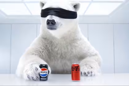 En el anuncio de Pepsi, el oso polar característico de Coca-Cola en infinidad de campañas aparece realizando una cata a ciegas de dos bebidas sin azúcar de ambas marcas. Las dos son claramente identificables para el espectador. Al probarlas y quitarse la venda de los ojos, el popular animal se muestra muy sorprendido de que Pepsi le haya gustado más que su refresco de toda la vida.